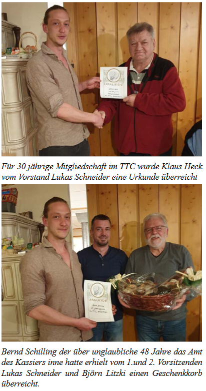 Hauptversammlungen des TTC Rangendingen und der damit ausgedrückten Wertschätzung für die Arbeit im TTC herzlichst verabschiedet.