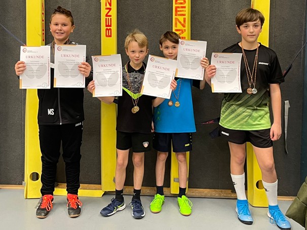Ein schöner Erfolg für den TTC Rangendingen und die beiden Protagonisten Matteo Berner und Maximilian Seibt, die zu Recht unten im Bild stolz Ihre Urkunden und Medaillen präsentieren