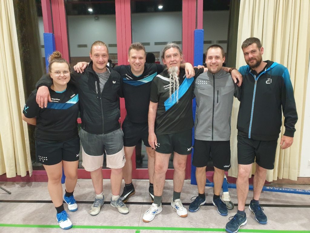 Das Team des TTC Rangendingen I mit v.l.n.r., Linda Tauchmann, Lukas Schneider, Patrick Vois, Roland Klaffschenkel, Ralf Subik und Boris Dreher, gewann ihr letztes Rundenspiel in der Bezirksklasse gegen den SV Weilheim II mit 9:7.