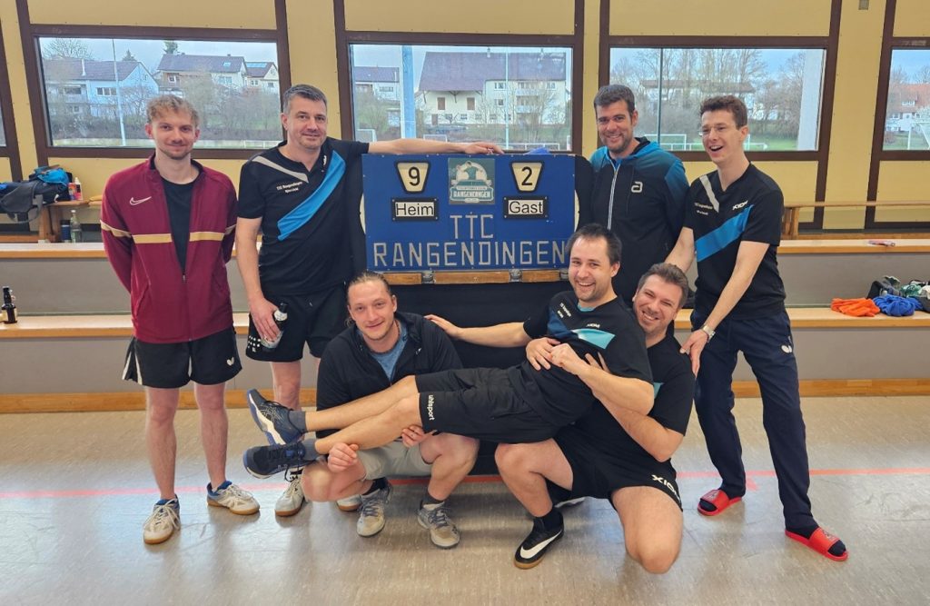 Im Heimspiel gegen den Vfl Dettenhausen konnte die 1. Mannschaft des TTC Rangendingen erstmals wieder in Stammbesetzung antreten, Björn Litzki war nach längerer Verletzungspause wieder am Start. Lediglich zwei Punkte ein Doppel und ein Einzel wurden abgegeben, so dass ein deutlicher 9:2 Erfolg über den Vfl Dettenhausen zu verbuchen war.