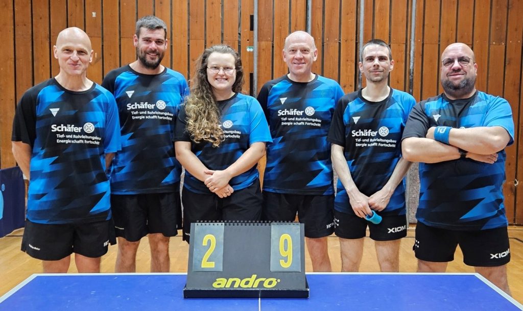 TTC Rangendigen II gewinnt 9:2 gegen den TTC Hechingen und 9:5 gegen die SpVgg Mössingen II. Es spielten v.l.n.r. Matthias Maier, Boris Dreher, Linda Tauchmann, Valerii Fokin, Alex Jehle und Alex Klose.